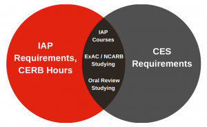 Note that after July 1, 2020, intern architects will be able to satisfy requirements for both programs (IAP and CES) through one activity. For example, the hours you spend taking the IAP courses or studying for the Oral Review, will be eligible for Learning Units (LUs) and can count towards your CES requirements.